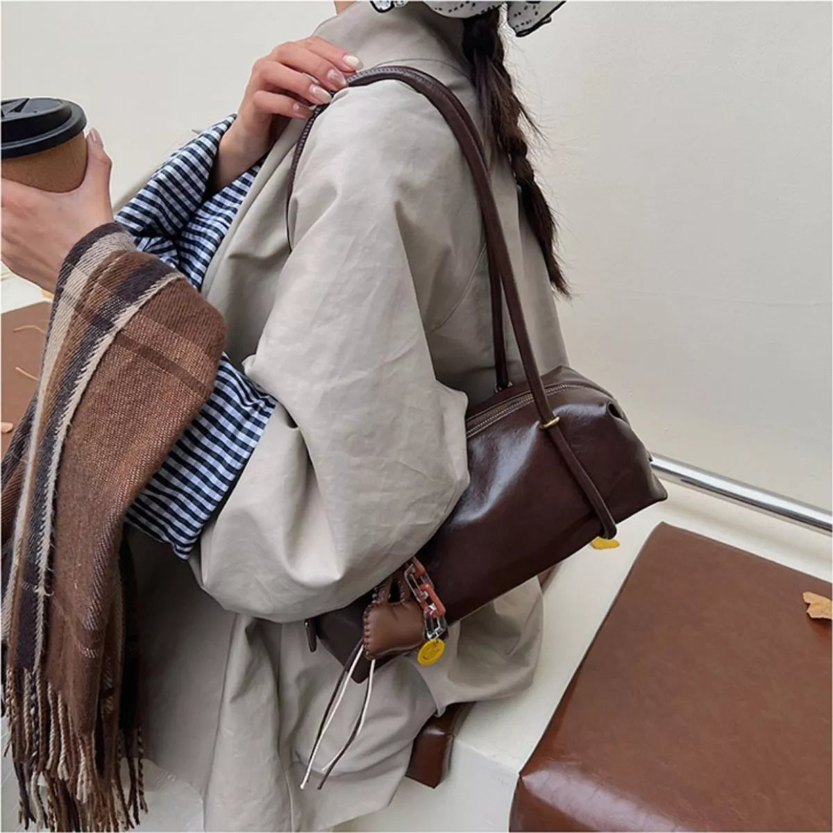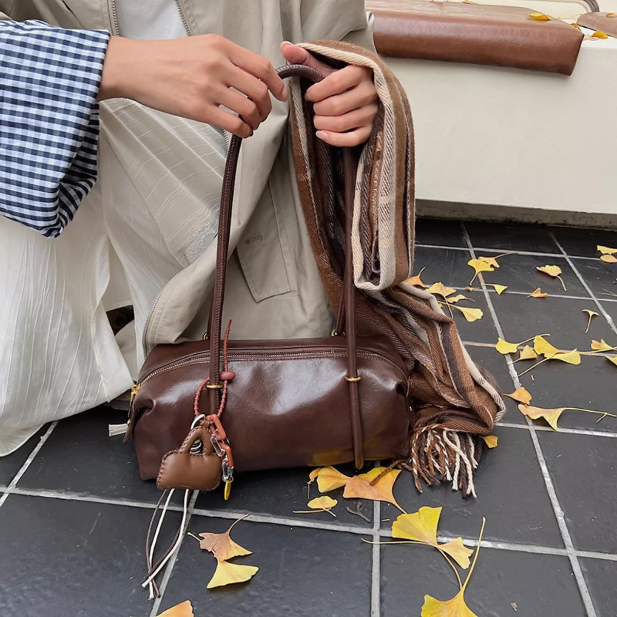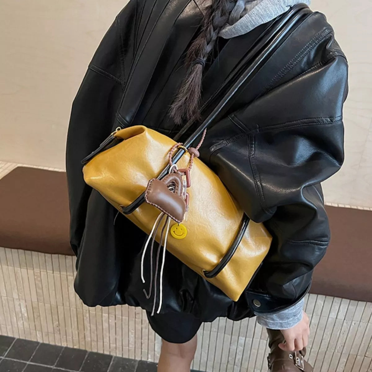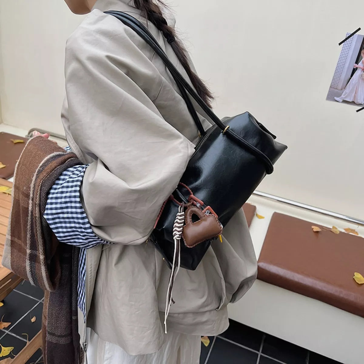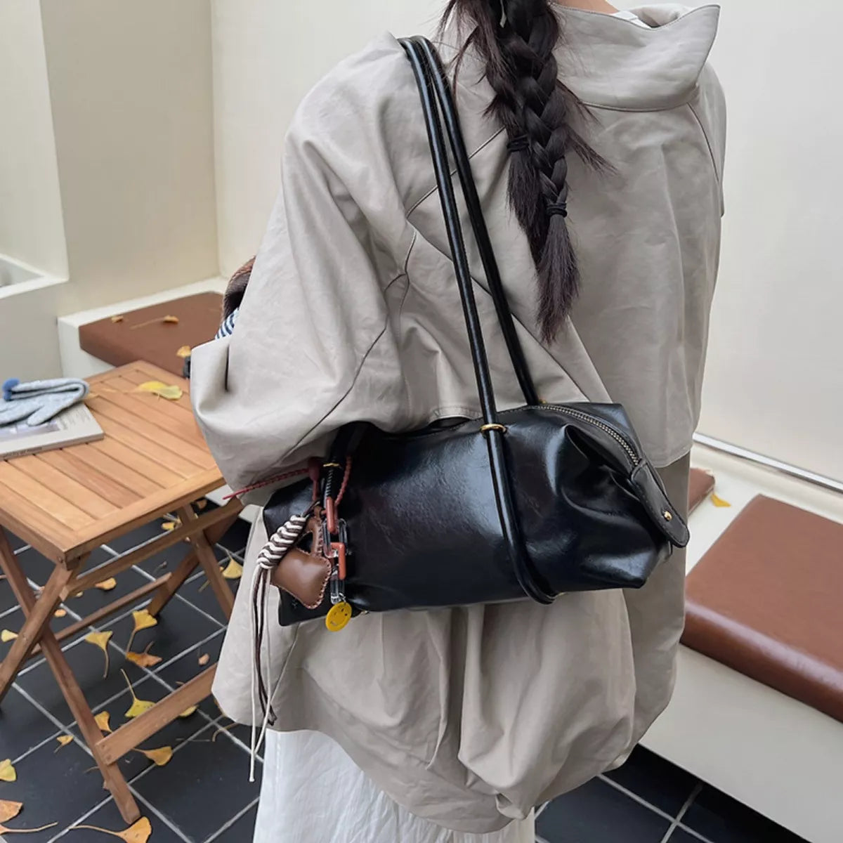 Leather Shoulder Bag with Charm